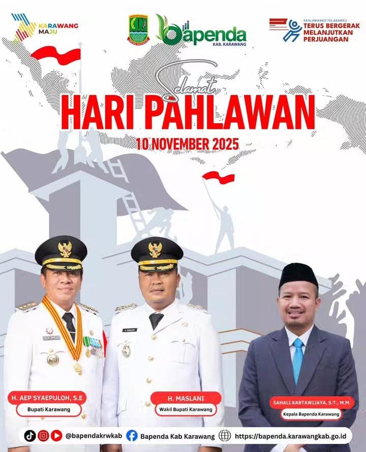 Bapenda Karawang mengucapkan Selamat Hari Pahlawan Tahun 2025, dengan memperingati Hari Pahlawan, instansi pemerintah dapat meningkatkan semangat nasionalisme dan persatuan bangsa, serta mengenang jasa-jasa para pahlawan yang telah berjuang demi kemerdekaan dan kedaulatan negara.(***)