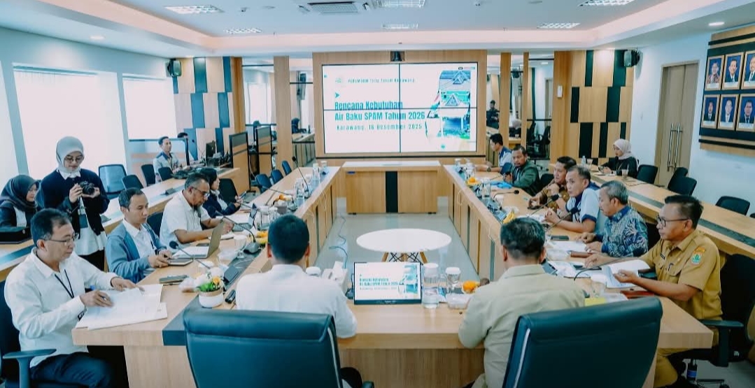 Karawang – Bupati Karawang, H. Aep Syaepuloh SE bertemu dengan Balai Besar Wilayah Sungai (BBWS), Perumdam Tirta Tarum, dan Dinas Pekerjaan Umum dan Penataan Ruang (PUPR), Selasa 16 Desember 2025, di Bandung, guna memastikan ketersediaan air baku untuk memenuhi kebutuhan air bersih dan pengairan di Kabupaten Karawang.