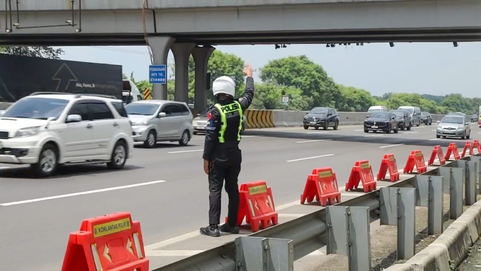 “Berdasarkan data dashboard posko, volume kendaraan sejak pagi mencapai sekitar 5.900 kendaraan per jam. Sementara ambang batas normal berada di angka 5.500 kendaraan per jam. Karena sudah melebihi batas, kami langsung memberlakukan contraflow sejak tadi pagi,” ujar AKBP Fiki saat ditemui di Rest Area KM 57 Tol Japek.