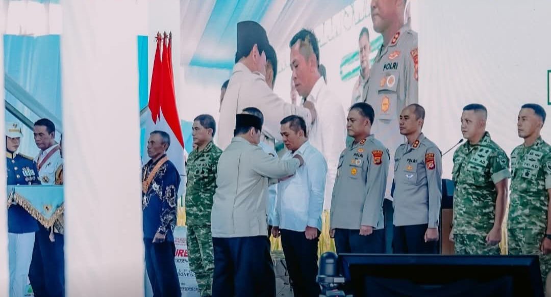 Tanda kehormatan tersebut disematkan langsung oleh Presiden Prabowo kepada Bupati Aep sebagai bentuk penghargaan atas jasa dan kontribusinya dalam mendukung serta menyukseskan program nasional di sektor pangan.