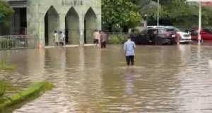 Proyek Rumah Panggung Karangligar Terendam Banjir