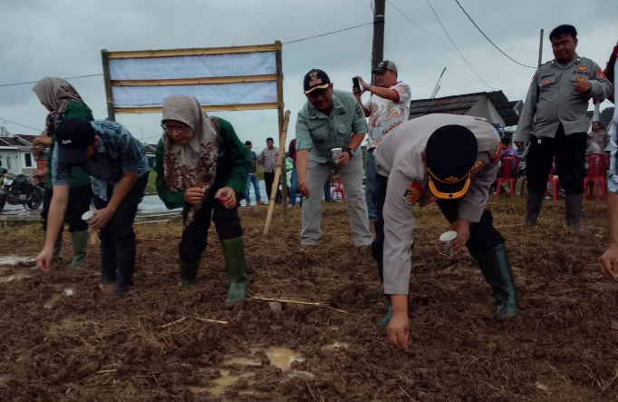 Kapolres Karawang, AKBP Fiki N Ardiansyah melalui Kapolsek Klari. Kompol. H. Bambang Sumitro.SH.,MM.,CHRA dalam keterangannya menyampaikan bahwa kegiatan ini bukan sekadar seremonial, melainkan langkah nyata Polri dalam membantu ketersediaan pangan di tingkat lokal. seperti hari ini Połsek Klari melaksanakan penanaman jagung di lahan seluas 1 Hektar.
