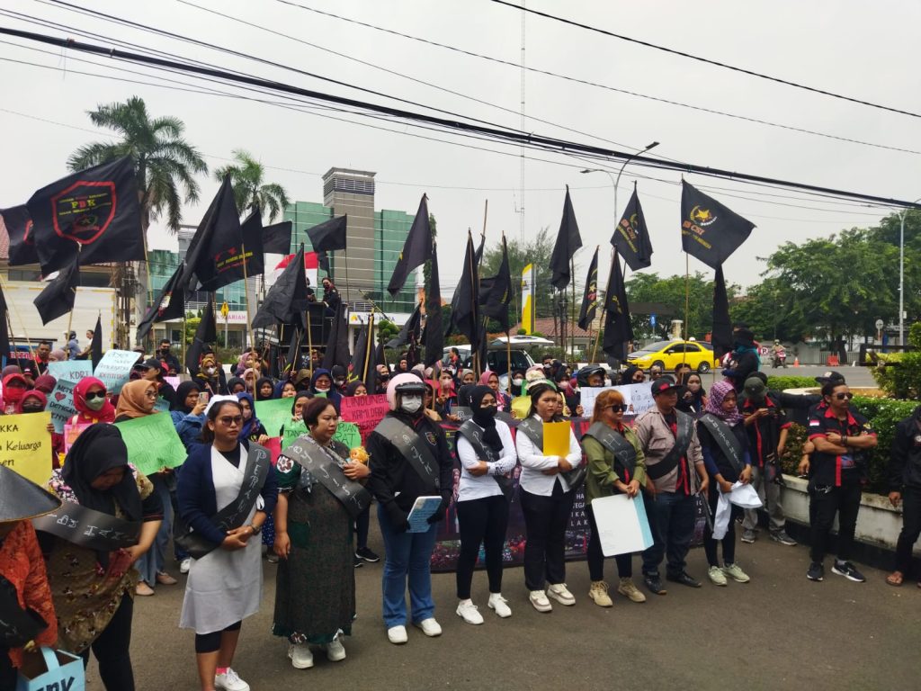 Karawang – Ratusan anggota Federasi buruh karawang menggelar aksi Internasional womens day kesetaraan gender didepan kantor bupati. Bukan hanya itu, didalam aksi tersebut ada 4 tuntutan diantaranya, berikan hak cuti haid sehingga hak tetap buruh perempuan, tindak tegas pelaku diskriminasi terhadap buruh perempuan, jadikan tanggal 8 maret hari libur nasional dan tolak perpu No.2 tahun 2022.