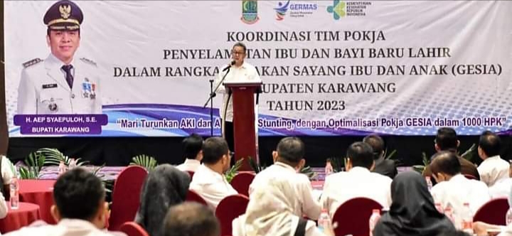 Karawang – Dinas Kesehatan Kabupaten Karawang menggelar rapat koordinasi Tim Pokja penyelamatan ibu dan bayi baru lahir dalam rangka gerakan sayang ibu dan anak (GESIA) di Kabupaten Karawang Tahun 2023. Kamis, 13 Desember 2023 di Balroom Hotel Mercure Galuh Mas, Karawang.