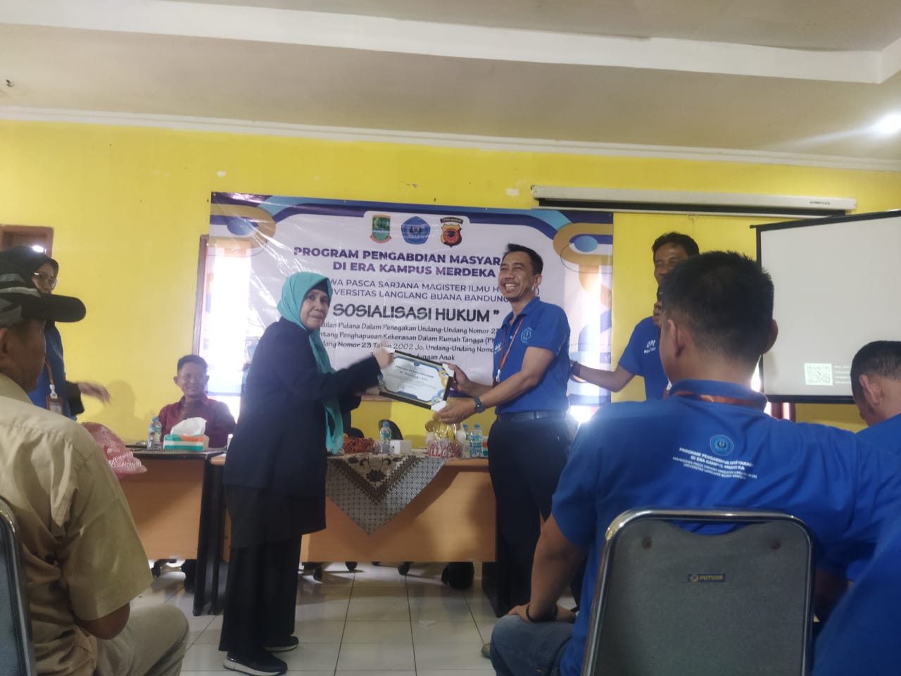 Mahasiswa Pasca Sarjana Program Magister Ilmu Hukum Universitas Langlangbuana Bandung melakukan sosialisasi tersebut dengan tema Sistem Peradilan Pidana Dalam Penegakan UU. No. 23 Tahun 2004 tentang penghapusan Kekerasan Dalam Rumah Tangga (PKDRT) dan UU. 23 Tahun 2022 Tentang Perlindungan Anak.