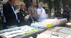KARAWANG – Operasi Gabungan Polres Karawang, Pemkab dan Kejaksaan Negeri Karawang berhasil mengungkap dan menangkap komplotan pengedar kosmetik ilegal dan berbahaya. Selain mengamankan para pengedar kosmetik ilegal dan berbahaya senilai hampir 1 Miliyar, polisi juga turut mengamankan produsen atau pabrik pembuatannya di wilayah Kutawaluya. Kapolres Karawang, AKBP Nuredy Irwansyah Putra mengatakan ribuan kemasan kosmetik siap jual, berikut alat pembuatannya diamankan ...