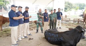 KARAWANG – PT Pupuk Kujang Cikampek menyalurkan 42 ekor hewan kurban di momentum hari raya Idul Adha 1444 H/2023 Masehi. Terdiri dari 33 sapi dan 9 domba, hewan kurban itu disebar menjadi 6.200 kantung daging kurban untuk masyarakat. Selain itu, perusahaan juga menyalurkan 12 ekor sapi untuk dipotong di 8 dusun di sekitar perusahaan.