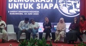 Karawang – Pengamat politik Rocky Gerung hadir di Diesnatalis dan Simposium Sarekat Demokrasi Indonesia (SDI) ke-2 tahun sebagai pembicara yang bertempat, di Aula Husni Hamid, Kantor Pemda Karawang, pada hari, Sabtu (10/6/2023). Pada kesempatan tersebut Rocky Gerung melakukan diskusi di Kabupaten Karawang membahas kesetaraan perempuan bergulat di dunia politik. Menurutnya Rocky Gerung, kebebasan menjadi hal terpenting untuk perempuan melakukan demokrasi. ...