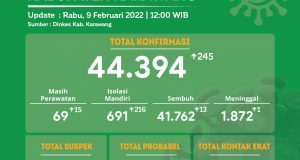 KARAWANG – Kasus harian Covid-19 di Karawang meningkat tajam. Per hari Rabu, 9 Februari 2022, sebanyak 245 orang di Karawang terpapar virus Covid-19. Hal tersebut diungkapkan Juru Bicara Satuan Tugas Percepatan dan Penanganan Covid-19 Karawang, dr. Fitra Hergyana Sp.KK. Fitra mengatakan, kenaikan kasus sebanyak 245 orang ini merupakan kenaikan tertinggi selama empat bulan terakhir. Oleh karena itu, ia mengimbau masyarakat ...