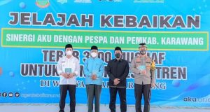 Karawang – Wakil Bupati Karawang, H. Aep Syaepuloh menerima secara simbolis sebanyak 3000 mushaf Qur’an yang akan dibagikan untuk seluruh Pondok Pesantren (Ponpes) di Kabupaten Karawang. Kegiatan tersebut dilaksanakan di Ponpes Baitul Burhan di Kecamatan Tempuran, Rabu (29/9/2021) siang. Penyaluran sebanyak 3000 mushaf Qur’an tersebut terlaksana berkat jelajah kebaikan sinergitas antara Agen Kebaikan Umat (AKU) bersama Paguyuban Ekonomi Syariah Pesantren ...