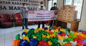Humas Alfamart menyerahkan paket sembako kepada Kepala Desa Margasari Karawang Timur Karawang – Demi membantu warga yang terdampak pandemi Covid-19, khususnya di masa PPKM darurat, Alfamart menyalurkan total 20 ribu paket bantuan sembako kepada masyarakat yang terdampak. Paket sembako berisi beras, minyak goreng, mi instan dan lainnya tersebut diberikan di 32 kota di Indonesia, mulai dari Sumatera, Jawa, Kalimantan dan ...