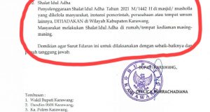 Karawang – Pemerintah Kabupaten Karawang mengeluarkan surat edaran pelaksanaan Shalat Idul Adha dan malam takbiran ditiadakan sementara. Alasannya, karena Karawang masih pemberlakukan pembatasan kegiatan masyarakat PPKM darurat. Isi Surat Edaran Bupati Karawang Nomor :450/3813/KESRA berdasarkan sebagai berikut : Jelang Hari Raya Idul Adha 1442 H, Pemkab Karawang mengeluarkan Surat Edaran (SE) Bupati tentang peniadaan sementara tempat peribadatan ditempat ibadah, malam ...