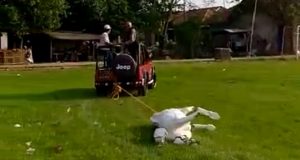 Patung kuda putih ditarik mobil keliling lapang sepak bola Telagasari – Heboh. Video yang beredar di media sosial patung kuda putih di Desa Pasirkamuning Kecamatan Telagasari dirusak massa, Sabtu (25/5/2021). Hal demikian, diduga imbas Pilkades simbol taman desa dan aset Pemerintahan Desa (Pemdes) Pasirkamuning dirusak massa. Bahkan, peristiwa pengrusakan simbol Iconik yang berdiri tepat di depan Kantor Desa Pasir Kamuning, ...