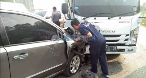 KARAWANG – Tabrakan beruntun terjadi di Kawasan industri Surya Cipta Karawang, Senin (24/6) pagi tadi. Kecelakaan yang melibatkan 4 kendaraan roda 4 dan satu kendaraan roda 2 mengakibatkan satu pengendara sepeda motor luka luka dan dilarikan ke Rumah Sakit Delima Asih. Kanit Laka Lantas Polres Karawang, Iptu Sabar Santoso mengatakan, saat kejadian, Lukas Riyanto (46), karyawan swasta yang mengendarai minibus ...
