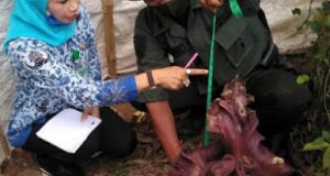 Karawang – Warga di Desa Pinayungan, Kecamatan Telukjambe Timur dihebohkan dengan kemunculan bunga mirip raflesia Arnordi atau bunga bangkai. Bunga itu berbau menyengat. Ditemukan di areal pemakaman Cidomba, Pinayungan, Telukjambe Timur. Menurut infomasi yang dihimpun, saat observasi di hari ke 4 ditemukan tinggi sudah mencapai 55 cm, lebar 40 cm, mahkota 24 cm, kelopak 31 cm sedangkan diameternya 100 cm. ...