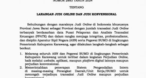 KARAWANG – Bupati Karawang akan memberikan sanksi pemecatan bagi ASN yang terbukti melakukan judi online. Bupati Karawang, Aep Syaepuloh memberikan peringatan tegas kepada semua Aparatur Sipil Negara (ASN) untuk tidak melakukan tindakan judi online. Ia mengatakan akan diberikan sanksi tegas bagi semua ASN yang terbukti melakukan judi online. Aturan ini akan disosialisasikan melalui pemberian surat edaran keputusan. “Pertama kami sampaikan ...