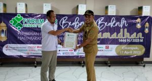KARAWANG – Dalam rangka menyambut Hari Raya Idul Fitri 1444 H Forum tenant CSR Indotaisei membagikan paket sembako untuk warga sekitar lingkungan perusahaan dan Muspika Kecamatan Cikampek. Senin (17/04/2023).
