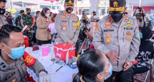 Karawang – Kapolda Jawa Barat, Irjen Drs Sutana, M.Si mengapresiasi capaian vaksinasi Kabupaten Karawang. Hal itu diungkapkan saat kunjunganya dalam rangka meninjau pelaksanaan akselerasi vaksinasi nasional dan bakti sosial yang digelar di Mapolres Karawang, Rabu (15/12/2021) pagi. Hadir di acara tersebut Bupati dr. Hj. Cellica Nurrachadiana, Wabup H. Aep Syaepuloh, Dandim 0604, Kapolres Karawang. “Capaian vaksinasi di Karawang sudah 70 ...