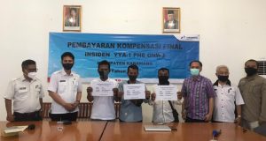 Karawang – Tim Pertamina Hulu Energi Offshore Nort West Java (PHE ONWJ) melakukan pembayaran kompensasi final ke ribuan warga terdampak tumpahan minyak YYA -1 untuk profesi nelayan, Poklahsar dan wisata bahari. Pembayaran secara simbolis dilakukan di Aula Dinas Perikanan Kabupaten Karawang, Rabu, (31/3/2021). Corporate Secretary PHE, Whisnu Bahriansyah menyampaikan pembayaran kompensasi dilakukan setelah melalui beberapa tahapan seperti uji petik dan ...