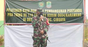 KARAWANG – Pra Tentara Manunggal Membangun Desa (TMMD) resmi dibuka oleh Komandan Kodim (Dandim) 0604 Karawang, Letkol Inf Medi Hariyo Wibowo, di Dusun Tanjungsari, Desa Sedari, Kecamatan Cibuaya, Semin (15/02) pagi dengan melakukan peletakan baru pertama dalam pembangunan Posyandu.