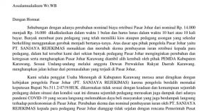 Karawang – Kenaikan retribusi di Pasar Johar membuat reaksi pedagang. Bahkan pedagang mengadukan hal tersebut ke Komisi II DPRD Kabupaten Karawang. Surat tersebut menjelaskan perubahan nominal retribusi Pasar Johar. Awalnya Rp14.000.00,- menjadi Rp16.000,00- dalam waktu satu bulan harus lunas sepuluh hari. Hal itu dijawab Novit Munandar, Manajer PT Sanjaya Rezeki Mas. Pihaknya mengamini adanya kenaikan tarif tersebut. Kata dia, retribusi ...