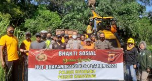 Hut ke-76 Polsek Kotabaru Membersihkan Lingkungan dan Sampah Liar