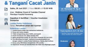 Karawang – Mandaya Hospital Karawang akan menggelar Webinar Akreditasi 4 SKP IBI dengan tema “Kenali, Cegah & Tangani Cacat Janin”. Acara tersenut menghadirkan 3 pembicara, diantaranya 1. dr. Fredy Lisnan, Sp.OG* Dokter Spesialis Kebidanan & Kandungan Mandaya Hospital Karawang, “Deteksi Dini Down Syndrome pada Kehamilan”.Kemuduan dr. Novysan M, Sp.A* Dokter Spesialis Anak Mandaya Hospital Karawang, “ Kenali Down Syndrome pada ...