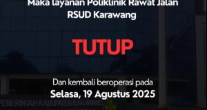 Rumah Sakit Umum Daerah (RSUD) Kabupaten Karawang menyampaikan informasi dengan adanya cuti bersama HUT Republik Indonesia ke-80 pada tanggal 18 Agustus 2025, maka layanan Poli Klinik Rawat Jalan RSUD Karawang tutup. Dan beroperasi kembali pada hari Selasa tanggal 19 Agustus 2025. Namun, untuk kondisi gawat darurat bisa dilayani melalui IGD.