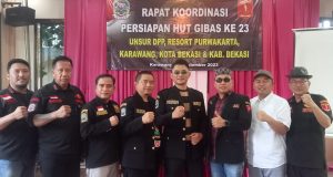 Rakor LSM Gibas Cinta Damai Karawang – Rapat Koordinasi dalam rangka menyambut peringatan hari ulang tahun (HUT) ke-23 Organisasi Masyarakat (Ormas) Gibas Cinta Damai berlangsung di Resto Indo Alam Sari Jalan Raya Taruma Negara Interchange, Purwadana, Telukjambe Timur, Karawang. Hadir dalam Rakor tersebut, Ketua Umum DPP Gibas Cinta Damai, Rony Romdhany, SH didampingi Sekjen Acep Sudrajat, Ketua OKK Angga Rosalio ...