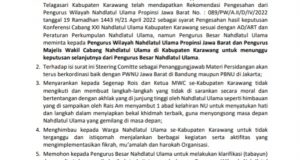Karawang – Isu mengenai karateker hasil Konfercab ke XXI PCNU Karawang dianggap semakin menguat. Sehingga muncul selembaran informasi atasnama Steering Comite (SC) Konfercab NU Karawang Emay Ahmad Maehi. Isi selembaran itu adalah sebagai berikut : Kepada Yth,Rois dan Ketua MWCSe-Kabupaten Karawangdi –TempatAssalamu ‘alaikum Wr. Wb.Rahmat dan karunia kita syukuri kehadirat Allah Swt. Sholawat dan Salam Semoga Tercurahkepada Baginda Rasulullah Saw. ...