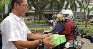 Ketua DPC Peradi Karawang H. Asep Agustian, SH.,MH memberikan makanan kepada pengendara sepeda motor di Galuh Mas Karawang – Kali kedua, Dewan Pimpinan Cabang Perhimpunan Advokat Indonesia (DPC Peradi) Kabupaten Karawang menggelar kegiatan bagi-bagi takjil gratis kepada para pengendara yang melintas di sekitaran Jalan Galuh Mas, Selasa (26/4/2022). Meskipun sudah menjelang H-6 perayaan hari raya idul fitri, tetapi antusiasme masyarakat ...