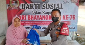 Purwakarta – Semarakan perayaan Hari Bhayangkara ke-76, Jajaran Kepolisian Repor (Polres) Purwakarta terus berkontribusi dalam membatu masyarakat. Seperti yang dilakukan Jajaran Kepolisian Sektor (Polsek) Cibatu, Polres Purwakarta membagikan Bantuan sosial (Bansos) berupa sembako kepada warga lanjut usia (lansia) dan anak yatim. Selain memberi bantuan, Polsek Cibatu melalui Bhabinkamtibmas juga mengedukasi masyarakat terkait penerapan protokol kesehatan 5M kepada warga. Kapolres Purwakarta, ...
