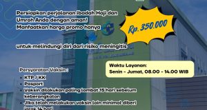 Karawang – Rumah Sakit Umum Daerah (RSUD) Jatisari memberikan pelayanan Vaksin Meningitis untuk masyarakat Karawang dan sekitarnya. Vaksin itu persiapan perjalanan ibadah haji dan umroh agar anda dengan aman. Soal harga tak usah khawatir terjangkau di kantong anda. Terlebih saat ini, RSUD Jatisari berikan harga promo. Manfaatkan harga promo hanya Rp350.000 untuk melindungi diri dari risiko meningitis. Bagi anda yang ...