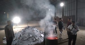 Karawang – Komisi Pemilihan Umum Karawang memusnakan sebanyak 19.000 lembar surat suara pemilu 2024 yang rusak dan sisa dengan cara dibakar di gudang penyimpanan logistik KPU Karawang, Selasa, (13/2/2024). Dikatakan Komisioner KPU Karawang, Kasum Sanjaya, saat ini kebutuhan surat suara pemilu 2024 di Karawang sudah terpenuhi sehingga sesuai aturan surat suara yang lebih dan rusak harus dimusnahkan sebelum berlangsungnya pemungutan ...