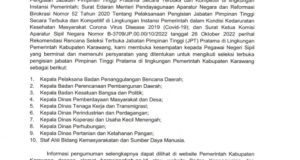 Karawang – Pemkab Karawang resmi mengumumkan membuka seleksi terbuka 10 jabatan kosong jabatan pimpinan tinggi pratama per hari ini (28/10/2022) hingga 3 November mendatang. Pansel pun sudah dibentuk yang terdiri dari unsur perguruan tinggi negeri, Pemprov Jabar hingga Baperjakat Kabupaten Karawang. Adapun 10 kursi JPT pratama yang disiapkan untuk para calon pendaftar di antaranya yakni Kepala Pelaksana Badan Penanggulangan Bencana ...
