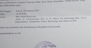 KARAWANG– Kementerian Agama (Kemenag) Kabupaten Karawang menggelar rukyatul hilal hari ini, Jumat (27/2/2025), untuk menentukan awal Ramadhan 1446 Hijriah/2025 Masehi. Kepala Kantor Kemenag Karawang, H. Sopian, mengungkapkan bahwa tahun ini rukyat hilal akan dilaksanakan secara mandiri di Gedung Hotel Britz Karawang. “Sebelumnya, kami biasanya ikut serta dalam rukyat hilal di kabupaten lain. Namun, karena kini kami telah memiliki alat sendiri ...