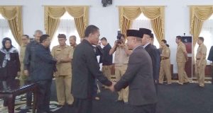 SUBANG – Bupati Ruhimat mengenalkan Salam Subang baru di depan ratusan pejabat Muspida, ASN dan masyarakat saat Serah Terima Jabatan dan Pisah Sambut di Aula Pendopo Bupati, Kamis (20/12/2018). Dalam sambutan Perdananya di depan Publik, Ruhimat menyampaikan salam Subang Baru. Salam Subang versi Jimat-Akur ini tidak banyak perubahan dengan Salam Subang sebelumnya. Ruhimat menyampaikan Salam Subang Baru dengan “Subang (dijawab) ...