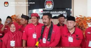 PDI Perjuangan Karawang daftar Bacaleg ke Kantor KPU Karawang/foto medsos KPU Karawang – Partai Demokrasi Indonesia Perjuangan (PDIP) Kabupaten Karawang siap bertarung secara fair pada penyelenggaraan pemilihan umum (Pemilu) tahun 2024. “Hal tersebut disampaikan Ketua Dewan Pimpinan Cabang (DPC) Partai Demokrasi Indonesia Perjuangan (PDIP) Kabupaten Karawang, H.Taupik Ismail (Kang Pipik) pada jumpa pers dikantor KPU Karawang usai menyerahkan berkas pengajuan bakal calon ...