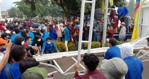 Karawang – Unjukrasa aliansi mahasiswa Pangkal Perjuangan berujung “jebol” pintu gerbang DPRD Kabupaten Karawang, Selasa (20/10/2020). Ratusan massa yang datang berkumpul di depan gerbang DPRD. Menutup Jalan Siliwangi menuju Jalan Jendral Ahmad Yani. Mereka juga membakar ban bekas di tengah Jalan dengan berorasi bergantian menolak UU Omnibus Law di Mobil Komando. Terpantau sejumlah personil kepolisian melakukan penjagaan di balik pintu ...