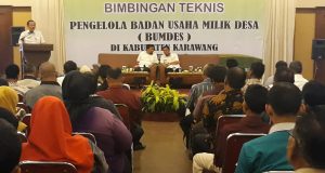 KARAWANG-Guna meningkatkan kemampuan, wawasan dan pengalaman para pengelola BUMDes, Pemerintah Kabupaten Karawang melalui Dinas Pemberdayaan Masyarakat Desa (DPMD) menyelenggarakan bimbingan teknis bagi para pengelola badan usaha yang dimiliki desa di Rumah Makan Sindang Reret, Rabu (4/7) yang juga dihadiri pengurus BUMDes dari 297 desa. Kepala Bidang Pemberdayaan Usaha Ekonomi Masyarakat (Kabid PUEM) pada Dinas Pemberdayaan Masyarakat Desa Kabupaten Karawang, Agus ...