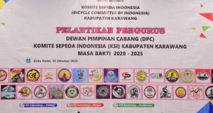 Karawang – Pengurus Pimpinan Cabang Komite Sepeda Indonesia Kabupaten Karawang periode 2020-2025, resmi dilantik, Minggu (18/10/2020). Acara pelantikan dihadiri Sekda Karawang,H. Acep Jamhuri. Dalam sambutanya, Sekda berharap Komite Sepeda Indonesia (KSI) bisa membantu Karawang untuk mempromosikan kembali sepeda, terutama untuk penyelenggaraan event-event di Kabupaten Karawang..“Untuk itu, kita akan selalu mendukung KSI dalam meningkatkan prestasi sepeda di Karawang terlebih, dalam membina ...