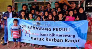 KARAWANG – PWI Kabupaten Karawang bersama Bank Jabar Karawang menggelar aksi sosial dengan memberikan trauma healing kepada anak – anak korban banjir di Desa Karangligar Kecamatan Telukjambe Barat, Jumat (10/1/2020). Trauma healing yang baru pertama kali dilakukan di Desa Karangligar, dimaksudkan untuk menghibur anak-anak korban banjir. Ratusan anak-anak sangat antusias mengikuti acara trauma healing dengan menghadirkan badut-badut serta acara permainan ...