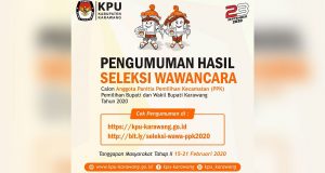 Read More »Hasil Seleksi Wawancara Calon Panitia Pemilihan Kecamatan (PPK) Dalam Rangka Pemilihan Bupati Dan Wakil Bupati Karawang Tahun 2020