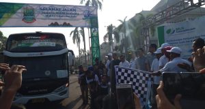 KARAWANG – Bupati Karawang dr. Cellica Nurrachadiana melepas pemudik gratis dari BPJS Ketenagakerjaan, Sabtu (9/6/2018) di plaza Pemkab Karawang. Mudik itu BPJS Ketenagakerjaan kembali menggelar kegiatan mudik bersama Tahun 2018. Kali ini peserta mudik yang diberangkatkan sebanyak 10.000 orang atau 2 kali lebih banyak dari yang diselenggarakan Tahun 2017 lalu. Para pemudik diberangkatkan serentak di 6 titik pemberangkatan yaitu Jakarta, ...