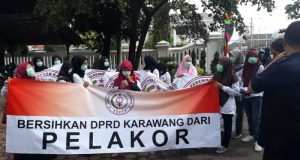 KARAWANG – Puluhan anggota Assosiasi Perempuan Karawang (Aspek) melakukan unjukrasa ke kantor DPRD Karawang, Selasa 18 Desember 2018. Pengunjuk rasa yang mengenakan tutup mulut, dengan membawa spanduk bertuliskan “DPRD bersih dari Pelor” itu berorasi di depan gedung rakyat. Mereka meminta tindak oknum dewan yang diduga menjadi pencuri laki orang atau Pelakor. Setelah berkumpul di pintu masuk gedung DPRD. Pengunjuk rasa ...