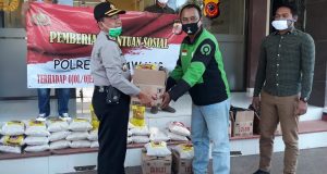 KARAWANG– Guna membantu beban para pekerja harian yang terdampak Pandemi corona, Kapolres Karawang, AKBP Arif Rachman Arifin S.I.K.,M.H. melalui Kabag Ren Polres Karawang AKBP Drs. H. Syamsudin, SH, MH lakukan aksi simpati dan humanis di tengah pandemi wabah bersama jajarannya dengan membagikan paket sembako kepada para pengemudi ojek online mitra Gojek. “bantuan itu di berikan untuk mendukung program pemerintah dan ...