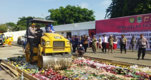 puluhan ribu barang bukti narkoba dimusnahkan saat Apel Gelar Pasukan Operasi Lilin Lodaya 2023 Karawang – Dalam rangka pengamanan Nataru 2024, puluhan ribu barang bukti narkoba dimusnahkan saat Apel Gelar Pasukan Operasi Lilin Lodaya 2023 di Lapangan Karangpawitan, Kabupaten Karawang. Kapolres Karawang, AKBP Wirdhanto Hadicaksono memaparkan, 4.092 personel gabungan TNI-POLRI serta mitra Kamtibmas telah mengamankan berbagai jenis narkoba hingga petasan ...