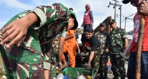 KARAWANG – Petugas gabungan yang terdiri petugas UPTD Kebersihan, anggota TNI dan warga di Kabupaten Karawang meratakan tumpukan sampah yang menggunung, Selasa 12 Februari 2019. Sampah yang menggunung dan tercecer itu berlokasi di pinggir irigasi Kompleks Perum Gading Elok I Kelurahan Karawang Wetan, Kecamatan Karawang Timur. Dinas Kebersihan dan Lingkungan Hidup Kabupaten Karawang melalui petugas kebersihan UPTD Kebersihan sinergitas dengan ...